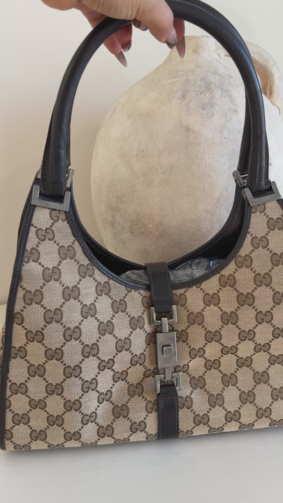 Gucci Jackie GG Canvas Leather Brown Hand Bag W/Dustbag